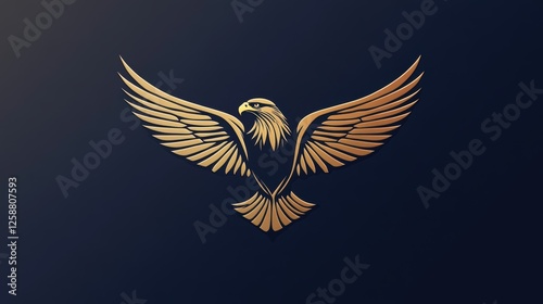 Obraz premium A golden eagle logo with spread wings on a dark background, symbolizing power...