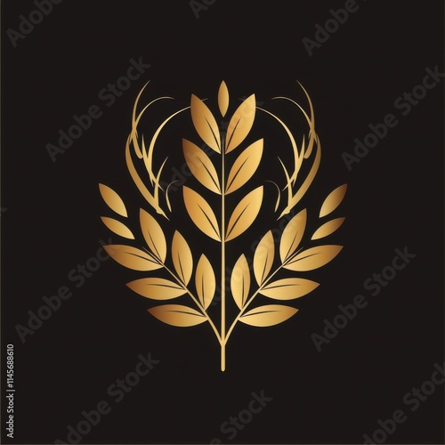 © Silk, Fototapeta premium A golden emblem of leaves and wheat, a vector graphic on black background