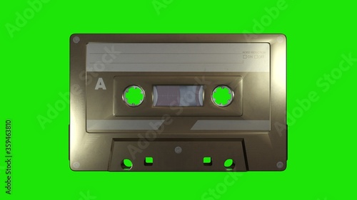 Obraz premium A golden music cassette on a green screen background. 3d rendering