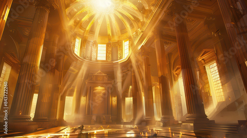 Obraz premium A golden room with a sun shining through the windows
