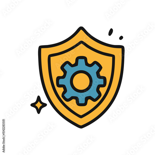 Fototapeta premium A golden shield with a blue gear inside, accompanied by a small star and two...