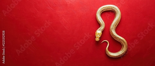 © muhamad, Obraz premium A Golden Snake Figurine Rests On A Textured Red Background. It'S A Stylish, Symbolic Image.