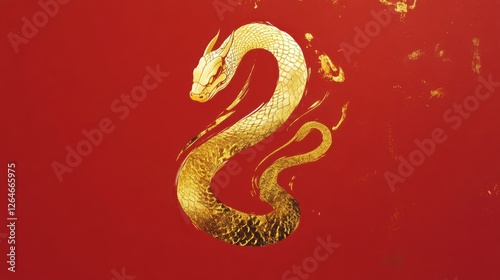 © ARTIFICIAN, Obraz premium A golden snake poster with simple brushstrokes and red background for Chinese New Year