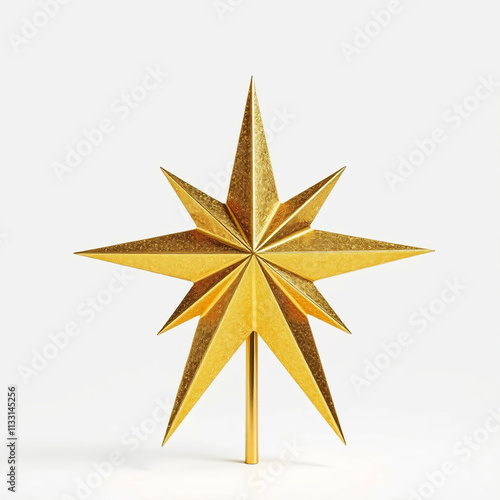 © SabsePahale, Obraz premium A golden star tree topper with shimmering details, isolated on a white background.