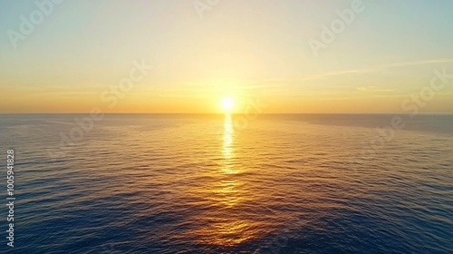 Fototapeta premium A golden sunset over a vast ocean, casting a warm glow, golden sunset,...
