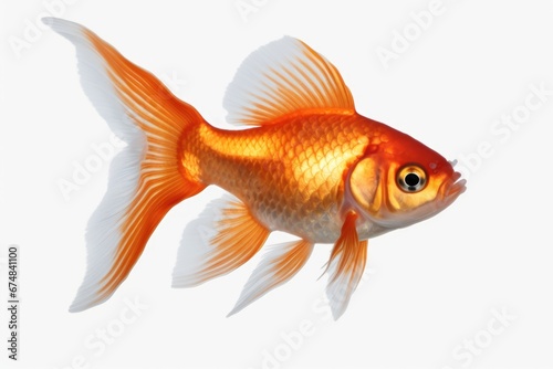 Fototapeta premium A goldfish swimming gracefully on a pristine white surface. This versatile...