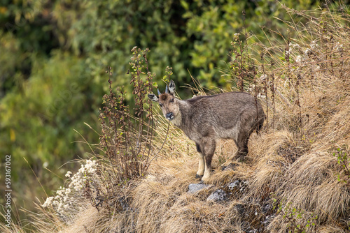 © Tanes, Naklejka premium A goral standing on the edge of the precipice.