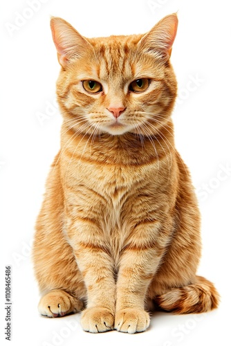© Init, Fototapeta premium A gorgeous ginger cat sits against a white background, looking directly at the camera. Its fur is a rich, warm orange.