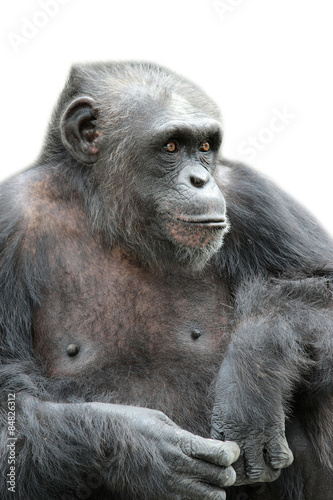 © Odua Images, Obraz premium A gorilla sitting on white background, isolated