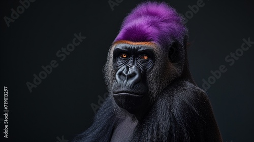 © progressman, Obraz premium a gorilla with a purple mohawk