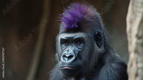 © progressman, Obraz premium a gorilla with a purple mohawk on its head