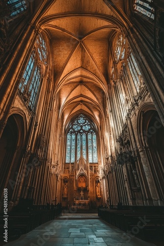 © Srisa, Fototapeta premium A gothic cathedral with intricate stone carvings under dramatic lighting