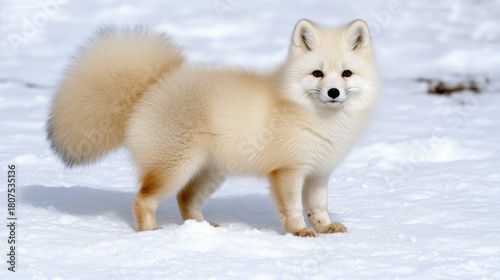 Obraz premium A graceful Arctic fox stands in the snow, gazing forward with bright eyes,...