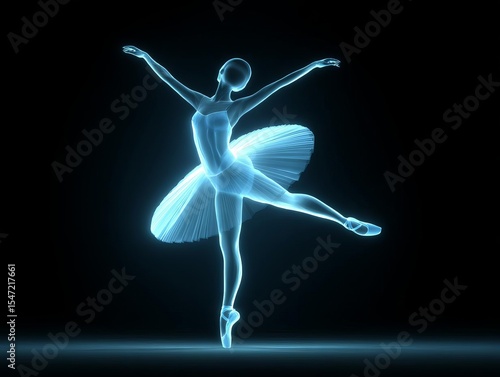 © InkCrafts, Obraz premium A graceful ballet dancer illuminated in soft blue light.