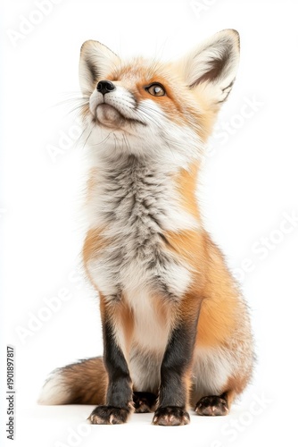 Fototapeta premium A graceful fox standing elegantly, isolate on white background, highlighting its striking features.