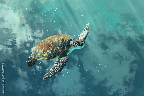 Fototapeta premium A graceful sea turtle gliding through the ocean currents