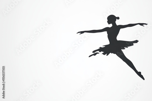© Junior, Naklejka premium A graceful silhouette of a ballerina performing a pirouette, her arms and legs extended in perfect form, surrounded by faint abstract swirls symbolizing motion and elegance.