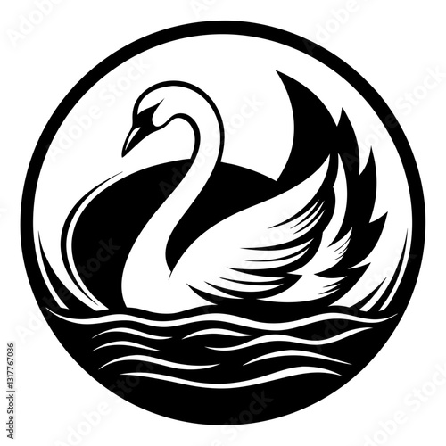 © Diclonius, Obraz premium a graceful swan gliding peacefully on the water within a circular logo frame, a simple yet elegant design, vector illustration