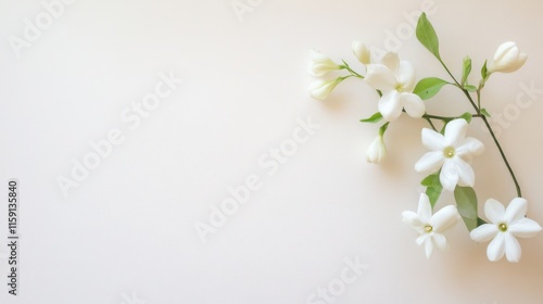 Fototapeta premium A graceful white jasmine against a soft ivory background, close-up shot, Minimalist style