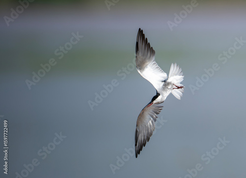 Fototapeta premium A graceful Wiskered Tern bird in flight, showcasing natural beauty.