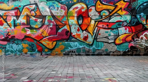 © Amna, Obraz premium A graffiti covered the street wall, background