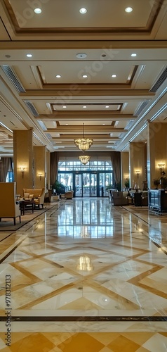 © Mr image, Fototapeta premium 31. **A grand hotel lobby with marble floors, elegant furnishings, and a luxurious, open design.