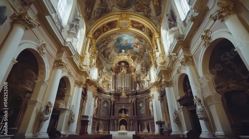 Fototapeta premium A grand interior of a baroque church showcasing ornate architecture and...