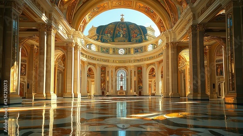 Obraz premium A grand interior of a beautifully designed dome structure with ornate details.