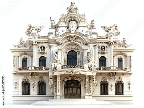 © nitiroj, Fototapeta premium A grand opera house, dramatic architectural facade, lavish artistic details, isolated on white background