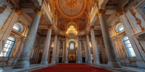 Fototapeta premium A grand room with an opulent red carpet and golden accents, perfect for...