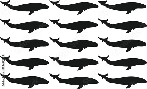 © zahidID: #10462466, Naklejka premium A graphic design showcasing a pod of whales gracefully swimming in a coordinated pattern against a plain white background.