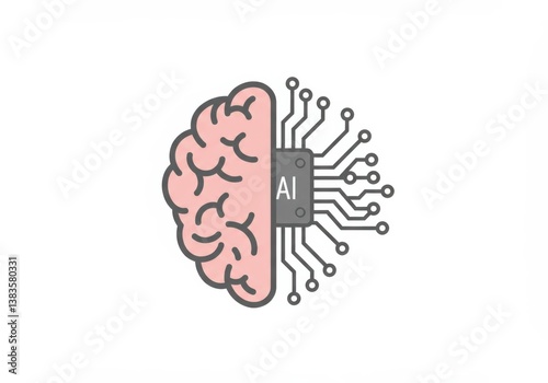 Obraz premium A graphic illustration of a brain merging with a circuit board, showcasing ai...