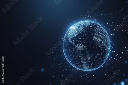 © Bundi, Obraz premium A graphic illustration of a world map on a blue background with the words big data and networking on it. 3D rendering.