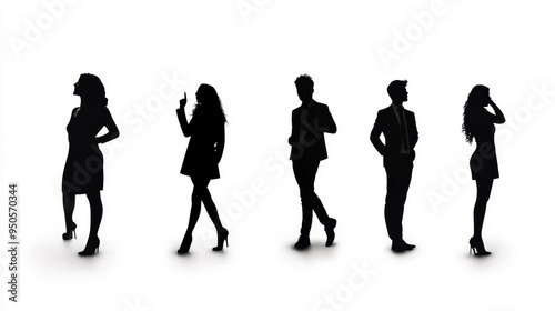 Obraz premium A graphic image of five people in silhouette, standing in different poses,...