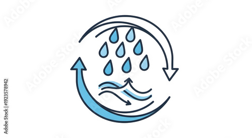 Fototapeta premium A graphic representation of the water cycle showing evaporation and rainfall within a circular arrow