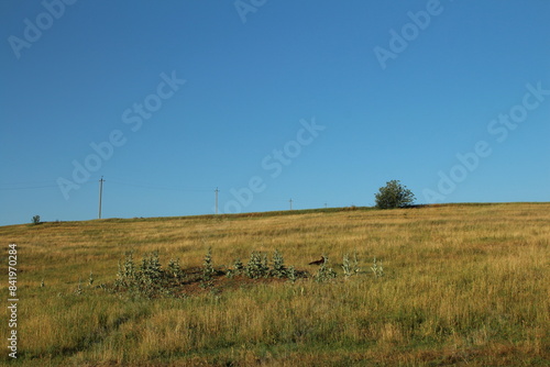 © parpalac, Obraz premium A grassy field with power lines
