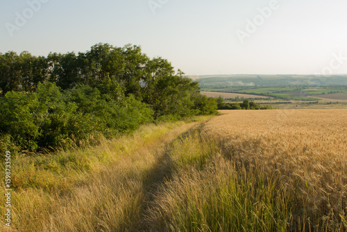© parpalac, Fototapeta premium A grassy field with trees in the background