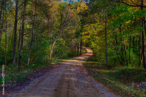 © Larry , Naklejka premium A gravel road leading up a small hill with a slight curve at the end.