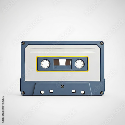 © Wardiyan, Obraz premium A gray and blue vintage audio cassette tape, isolated on a plain white background.