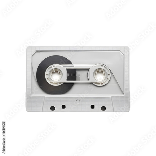 © Mono, Obraz premium A gray audio cassette tape on a white background, top view, studio shot.