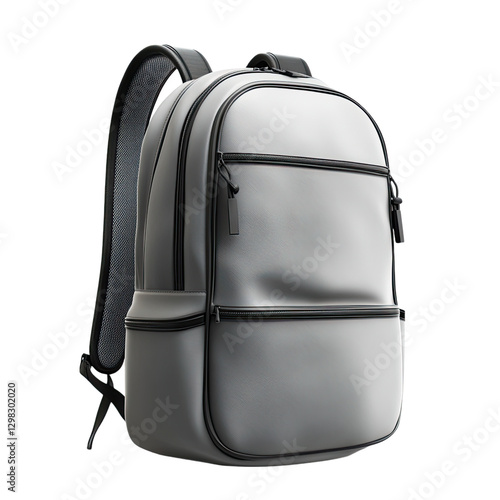 © Transparent-World, Fototapeta premium A gray backpack with black accents, front view on a transparent background