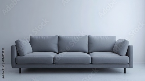 © G.Go, Fototapeta premium A gray couch with three cushions sits in a white room