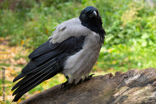 © The physicist, Fototapeta premium A gray crow communicates with a person.