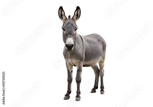 © Muaz, Obraz premium A gray donkey standing in a full shot against a plain white background looking at the camera directly
