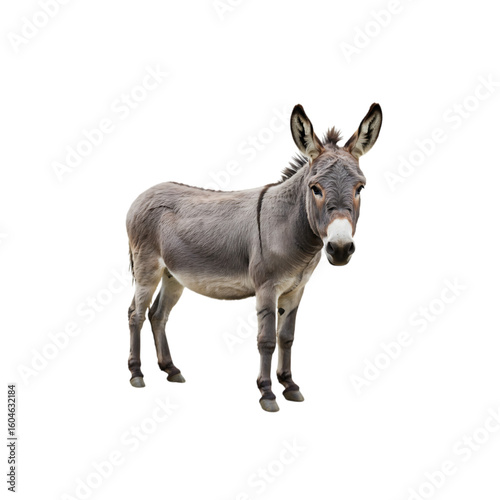 Fototapeta premium A gray donkey standing proudly isolated on transparent background