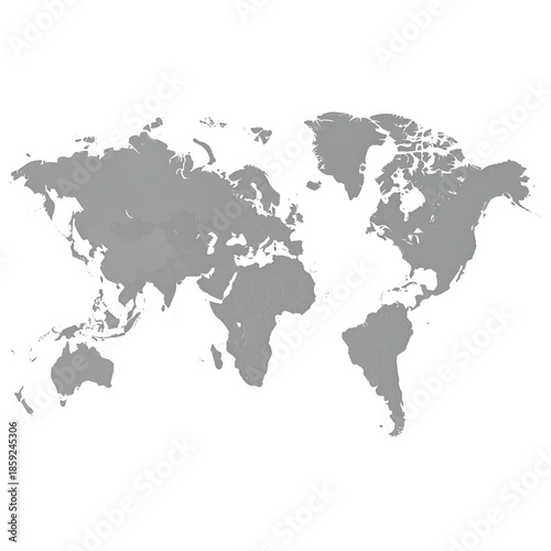 © Ikhsan, Fototapeta premium A gray-scaled outline of the world map against a stark black background