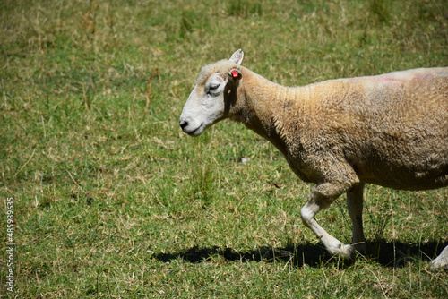 © Chris, Fototapeta premium A grazing sheep walks through a summer field