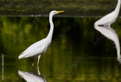 © Николай Мороз, Fototapeta premium A great egret hunts on the lake.