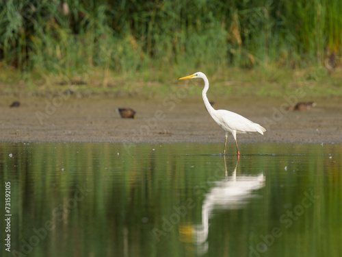 Fototapeta premium A Great Egret standing in a pond