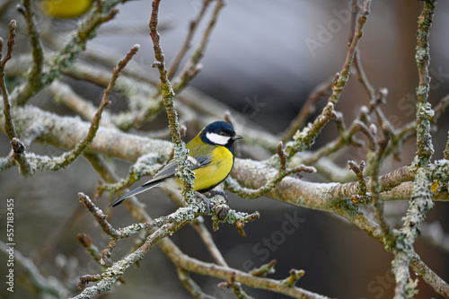 © Jonas, Fototapeta premium A great tit sitting in apple tree